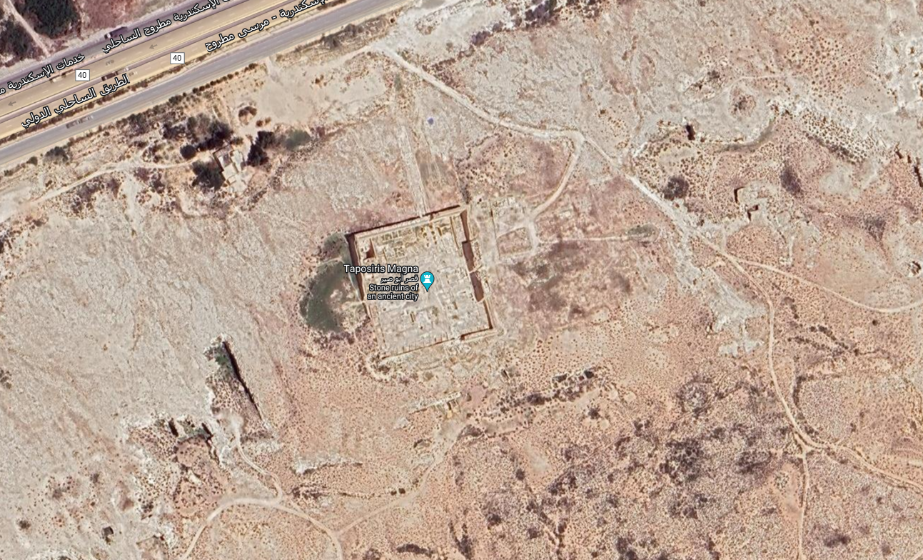 Taposiris Magna is an ancient temple complex located near Alexandria, Egypt, on the Mediterranean coast. Built during the Ptolemaic period (circa 3rd century BC), it is dedicated primarily to the god Osiris and served as a significant religious and cultural center. The site is known for its monumental architecture, including a large enclosure wall, hypostyle halls, and a distinctive underground tunnel system believed to have ritual significance.